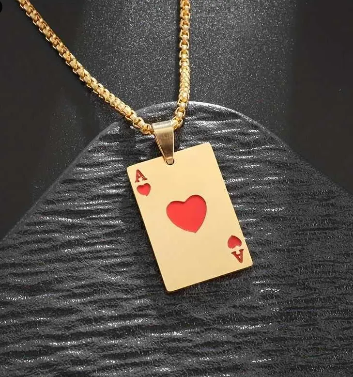 Product Name: Couple Instagram Style Poker Pendant Necklace (Peach/Spade A Personalized Hip Hop Necklace, Lucky Fashion Love Poker Sweater