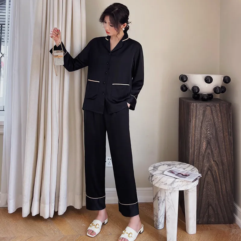 Lapel Cardigan Design: Featuring a timeless lapel cardigan style, these pajamas offer a touch of elegance and