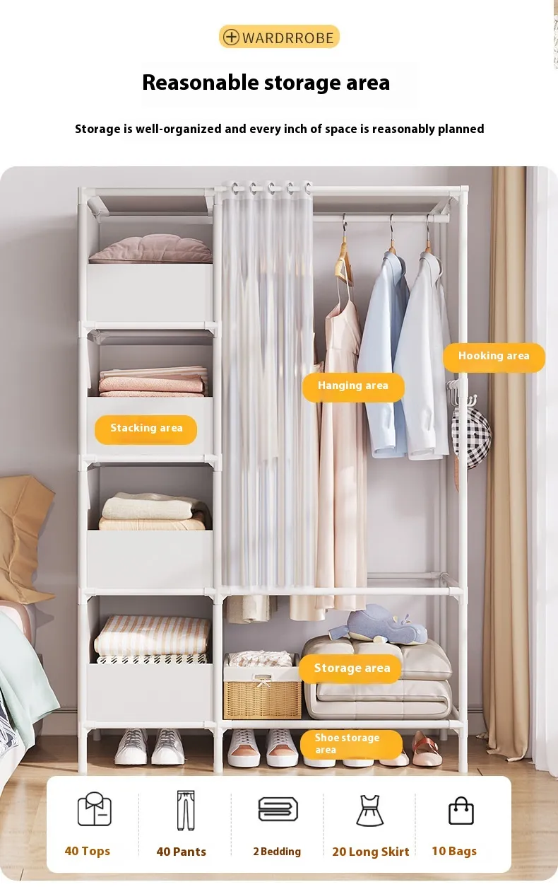 covered wardrobe, fabric wardrobe, portable wardrobe, storage wardrobe, dust-proof wardrobe, space-saving wardrobe, easy assemble wardrobe, affordable wardrobe, wardrobe for small spaces, closet alternative