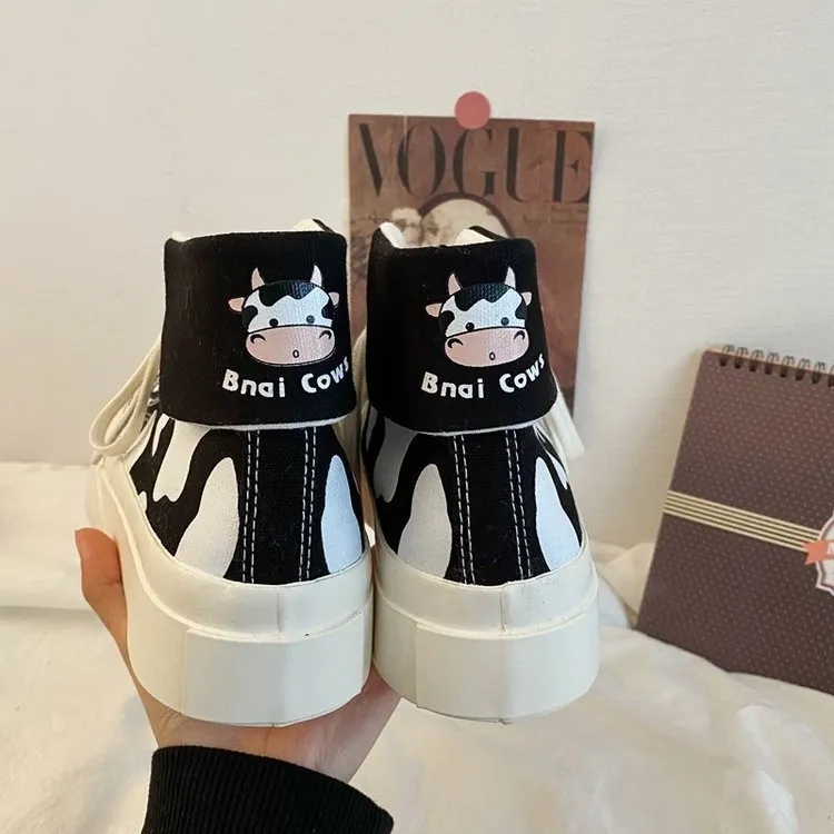 Cow Cute Preppy Women's High-top Canvas Shoes – Playful, Stylish, and Comfortable