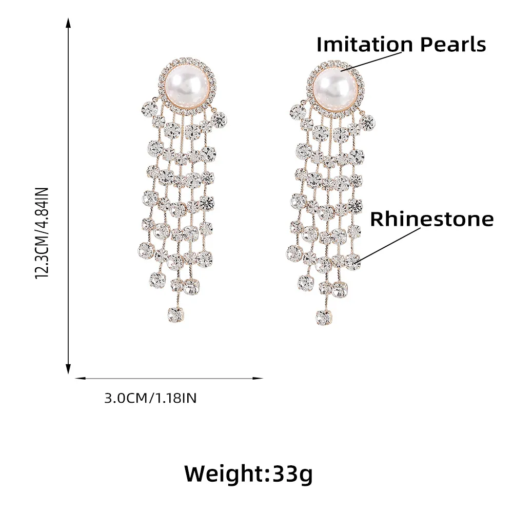 Creative Alloy Inlaid Pearl Diamond Rhinestone Long Fringe Earrings Female