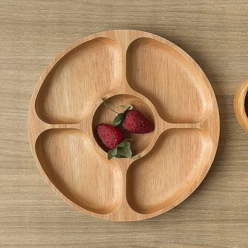 Creative And Personalized Round Compartment Tray Solid Wood Dried Fruit Platter Snacks Nuts Snacks Refreshments, Wooden Plates