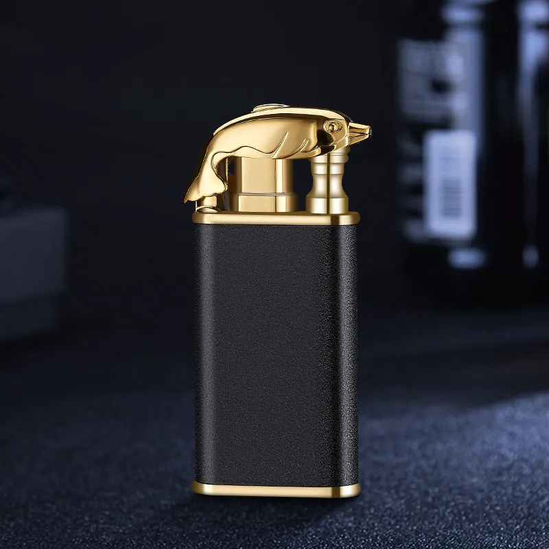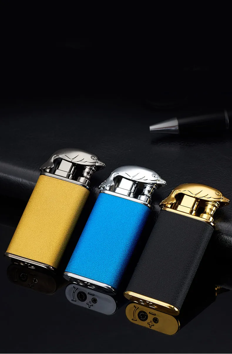 Creative Blue Flame Lighter Dolphin Dragon Tiger Double Fire Metal Winproof Lighter Inflatable Lighter
