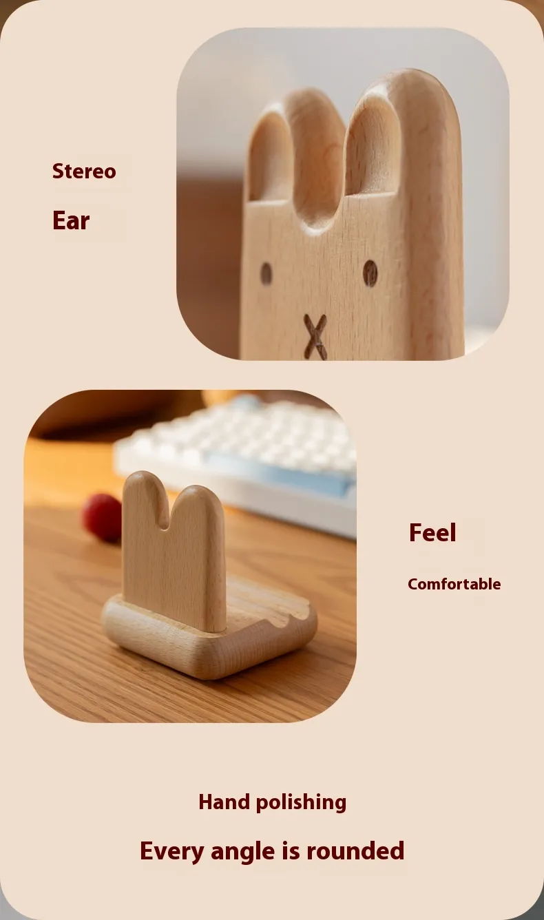 The Creative Bunny Tatami Wooden Mobile Phone Stand combines charm, functionality, and sustainability. Keep your phone secure, enjoy hands-free convenience, and add a unique decorative touch to any space.