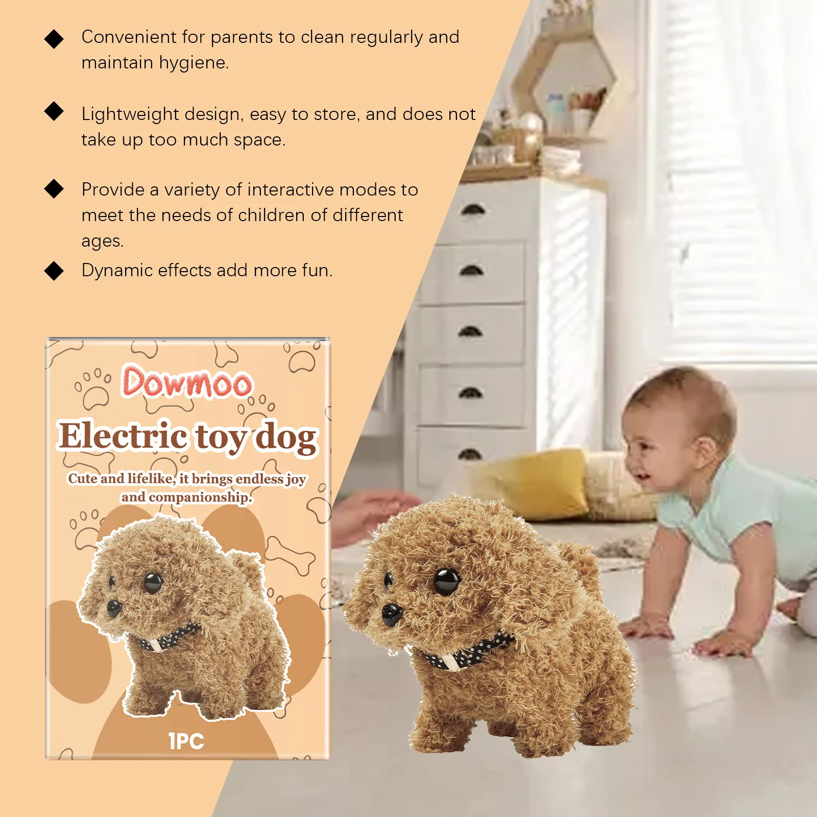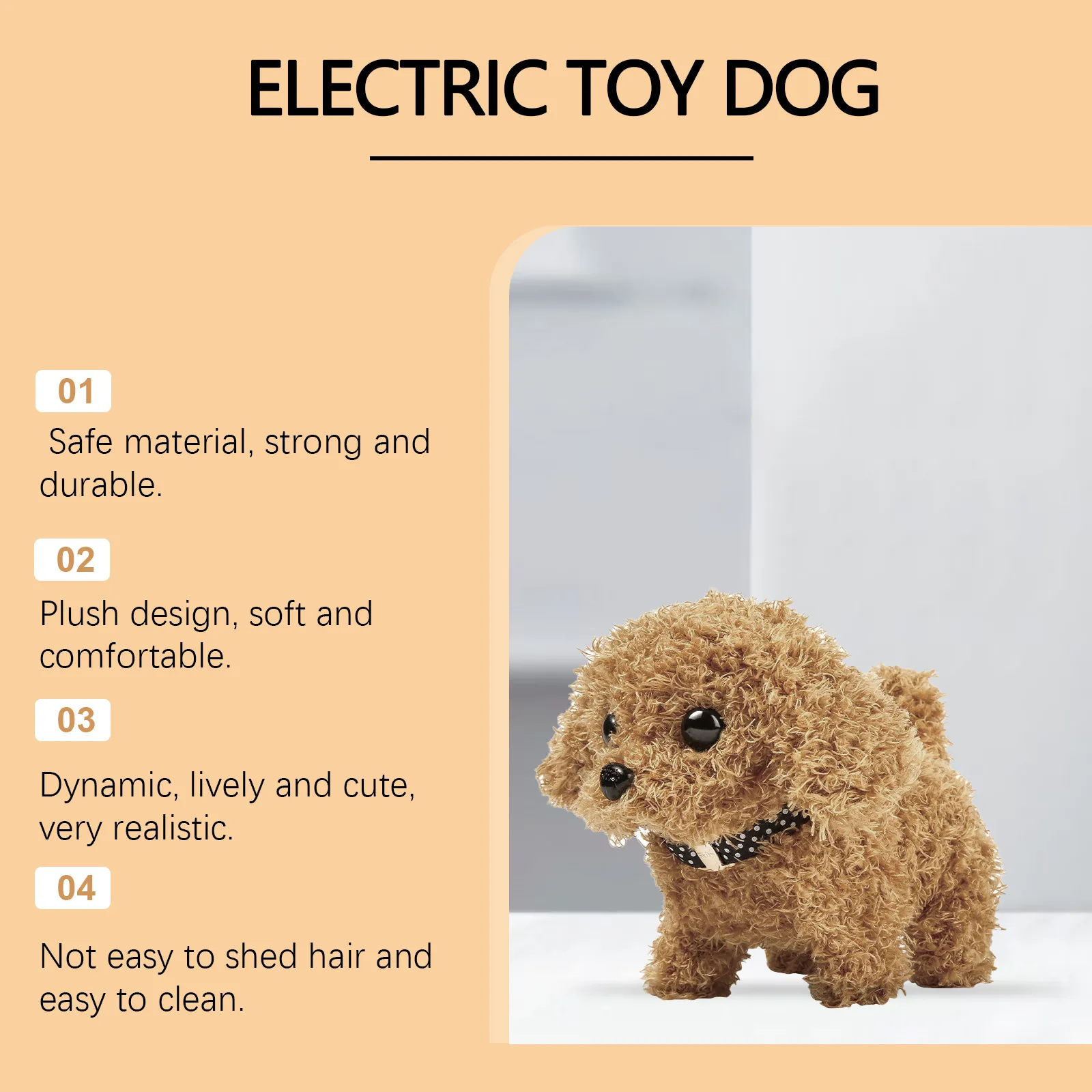 Maintaining this plush toy dog is a breeze. It can be machine-washed or hand-washed with ease, ensuring it stays clean and fresh for continuous play. The durable materials and quality stitching mean that even after repeated washings, it will continue to look as good as new, making it a long-lasting addition to any collection.