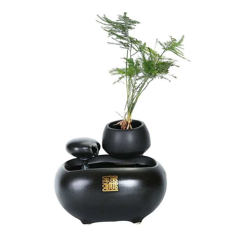 Creative Ceramic Flowing Water Fountain Ornament with Atomizing Humidifier