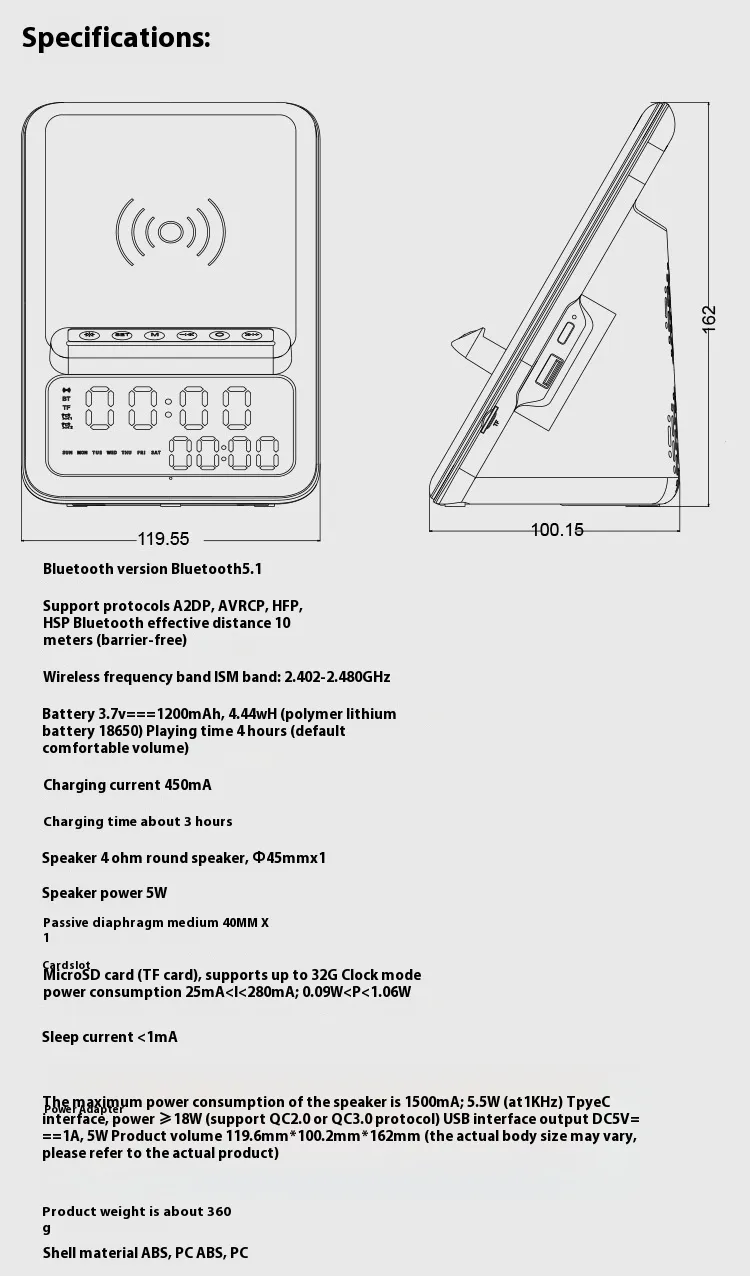 Creative Clock Wireless Charging Bluetooth Speaker