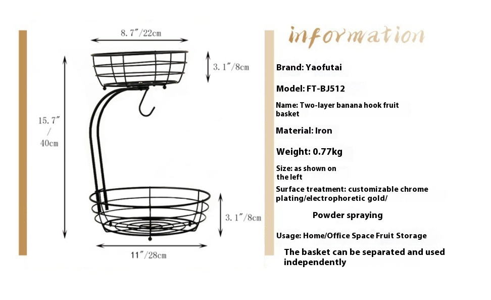 Specification: double-layer banana hook fruit basket