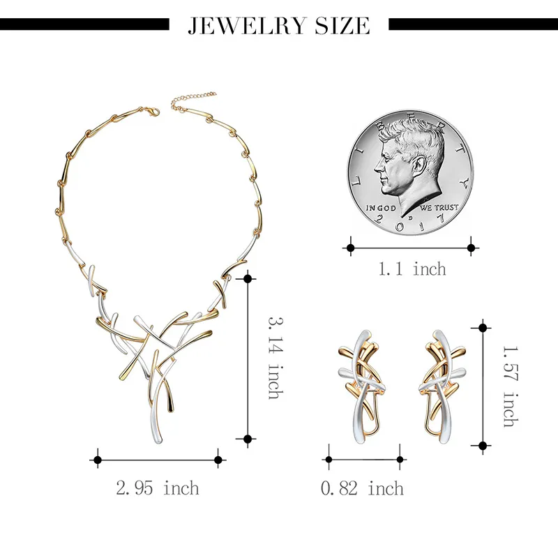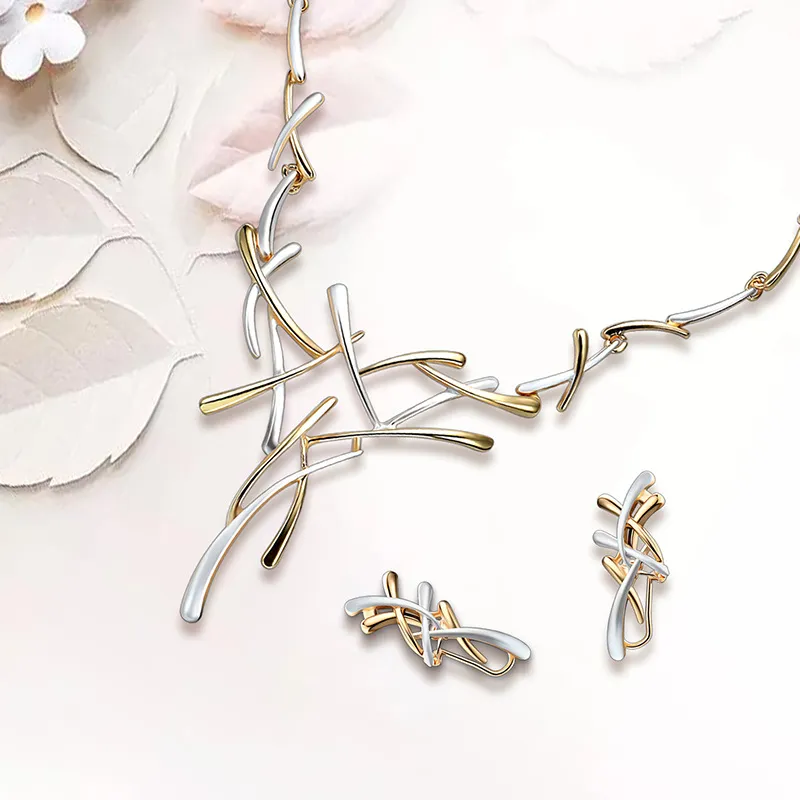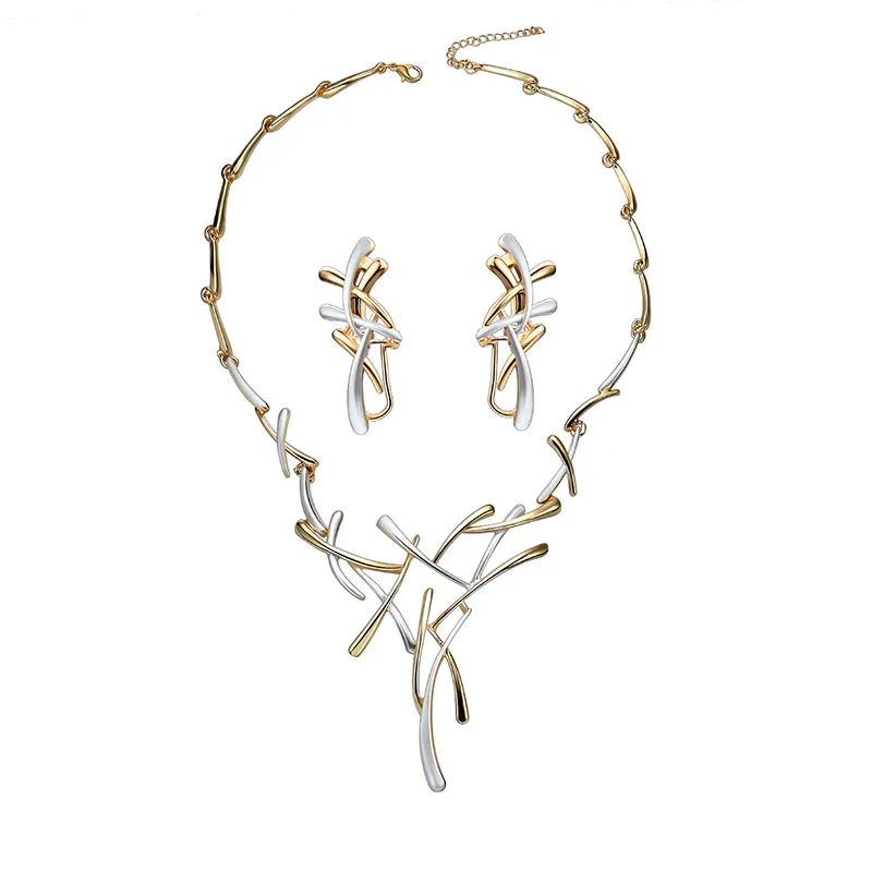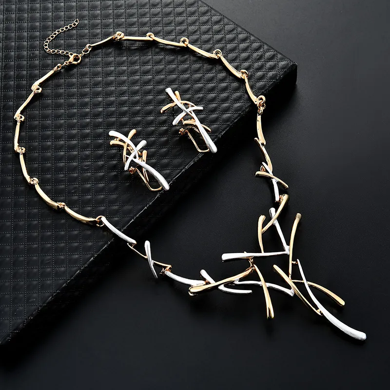 Creative Exaggerated Jewelry Two-color Cross Necklace Earrings Two-piece Set