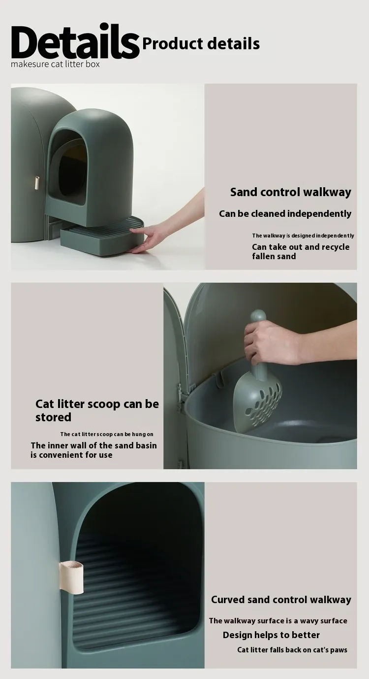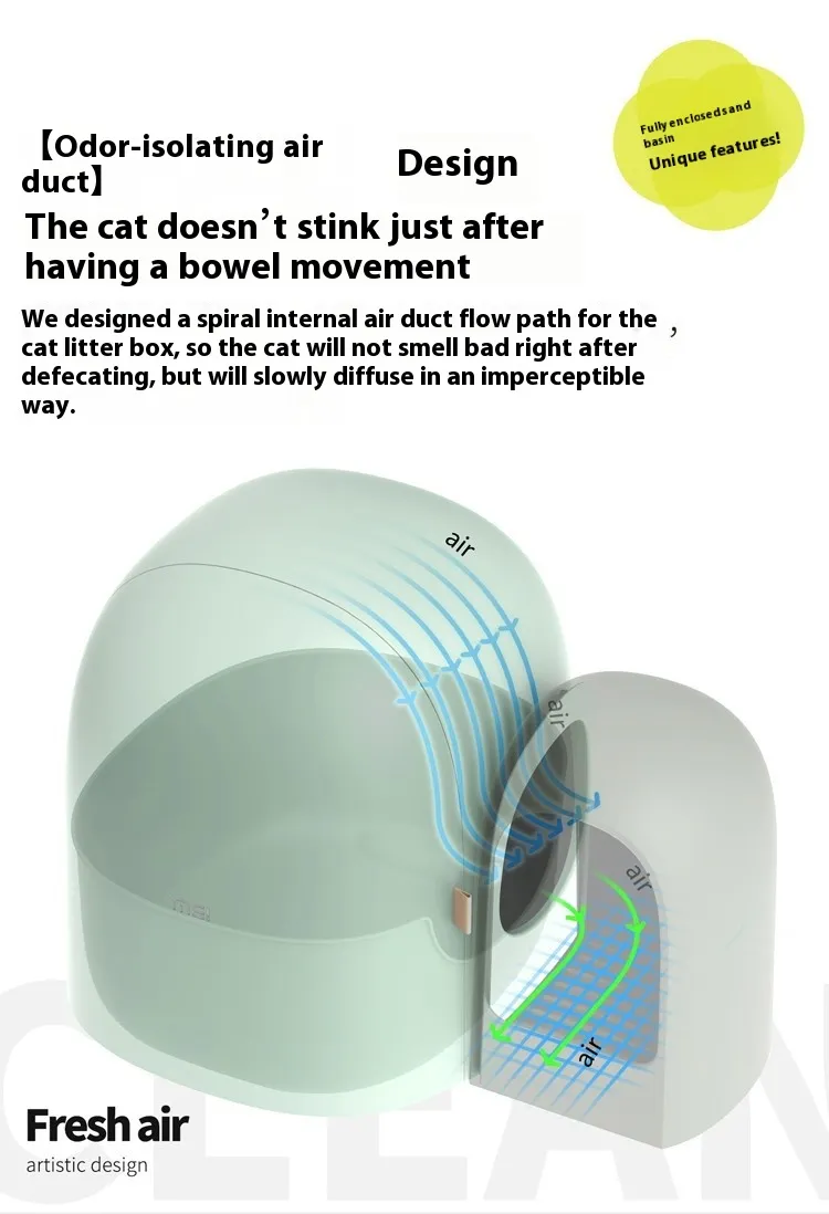 Fully Enclosed Design: Keeps your cat’s litter contained, preventing spills and maintaining a cleaner environment.