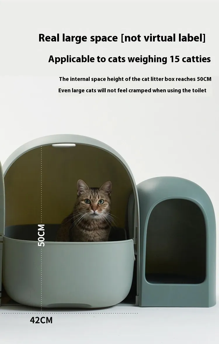 Ideal for both single and multi-cat households, this oversized litter box combines convenience, comfort, and cleanliness, making it an essential addition to any cat lover's home.