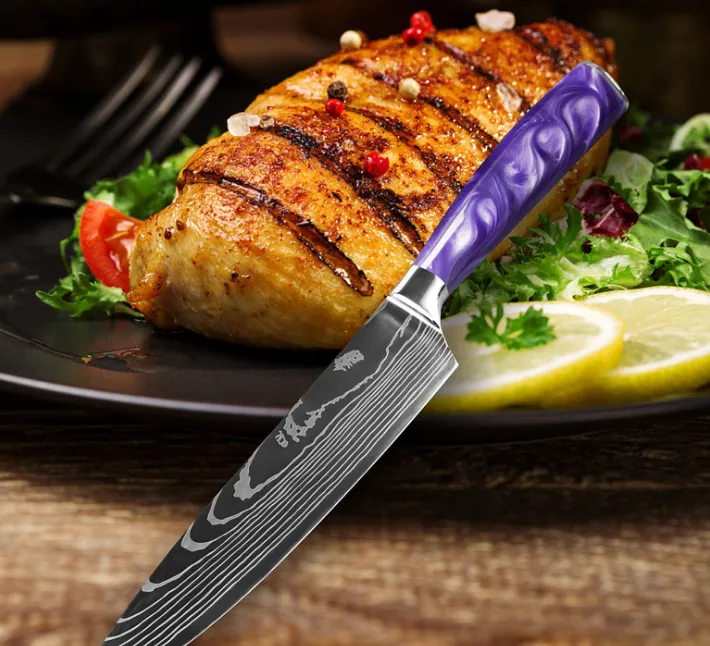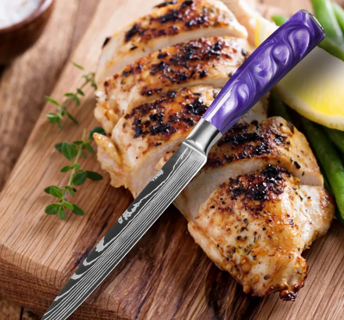 The eye-catching purple handle adds a touch of creativity and personality to your kitchen, making the knife as stylish as it is functional.