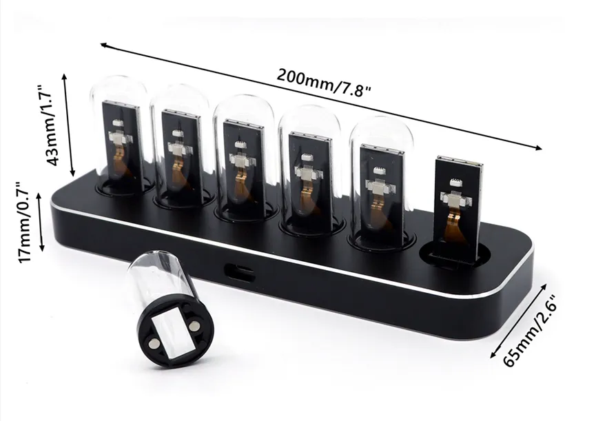 Nixie Tube-Inspired LED Display: Featuring an innovative LED display designed to resemble vintage Nixie tube clocks, this