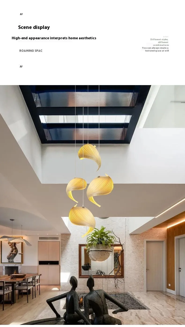 With its unique blend of modern design and natural elements, the Creative Living Room Pendant Lamp enhances any environment with warmth and charm, making it the perfect lighting fixture for those seeking to create an inviting ambiance.