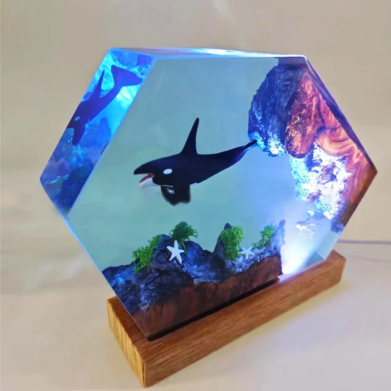 Creative Resin Wooden Killer Whale Small Night Lamp Decorative Crafts