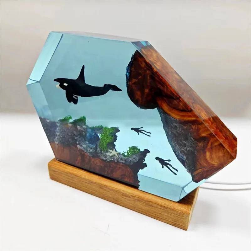 Crafted from high-quality resin and wood, this lamp is both durable and environmentally friendly. The wooden base adds a rustic touch, while the resin killer whale is beautifully detailed, offering an exquisite balance of art and functionality.