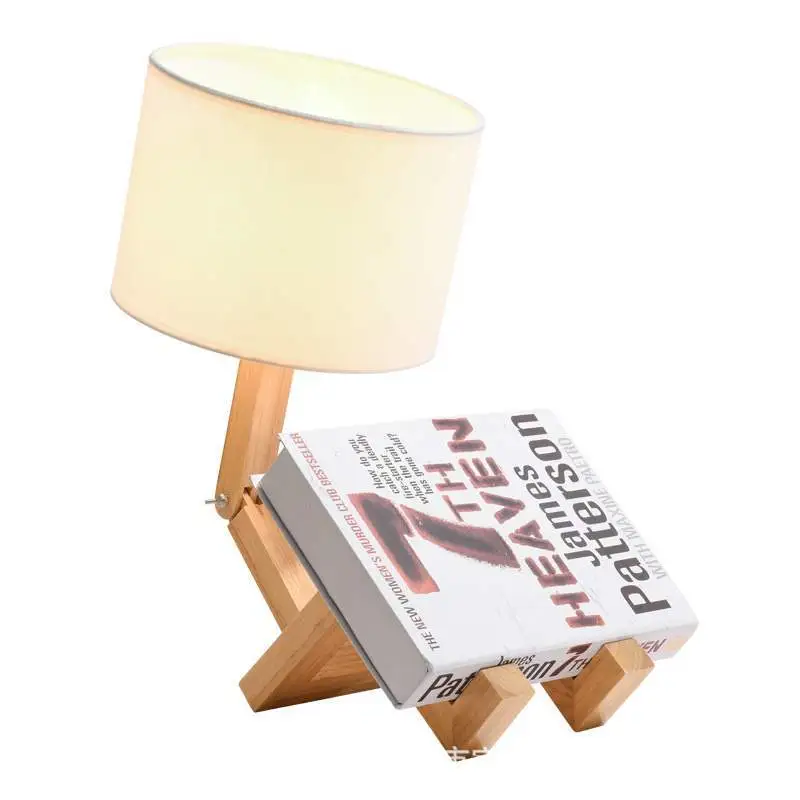 Creative Small Machine Humanoid Table Lamp Wooden Table Lamp Fashion Design Home Decor