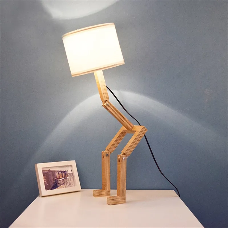 Creative Small Machine Humanoid Table Lamp: Wooden Fashion Design for Stylish Home Decor