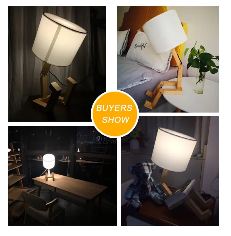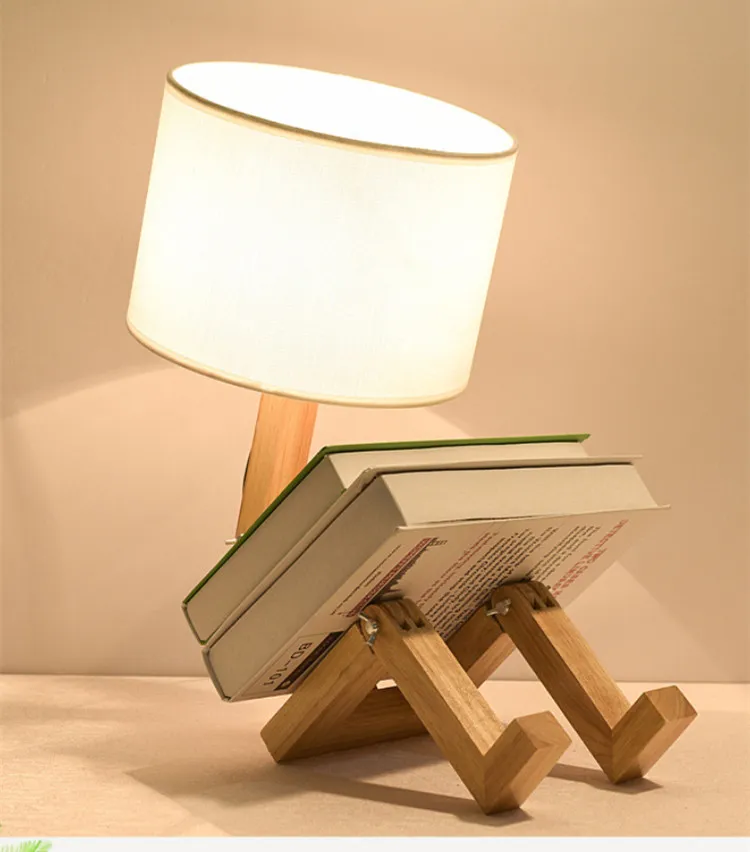 Creative Small Machine Humanoid Table Lamp Wooden Table Lamp Fashion Design Home Decor