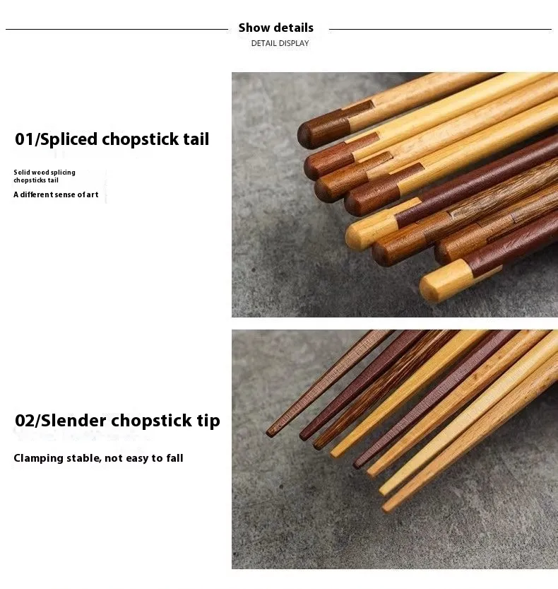 Creative Splicing Anti-slip Personal Household Wooden Chopsticks