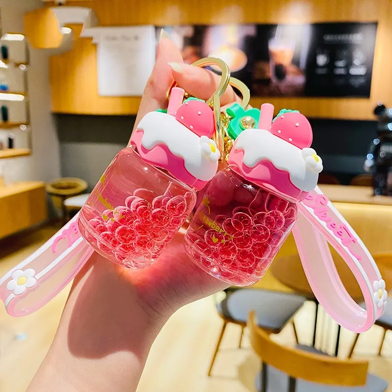 Creative Strawberry Cream Fruit Jar Girl Heart Keychain Automobile Hanging Ornament Exquisite