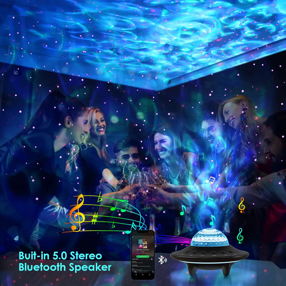 Water Ripple Projection: Simulates the calming effect of water ripples, adding a dynamic element to the light display.