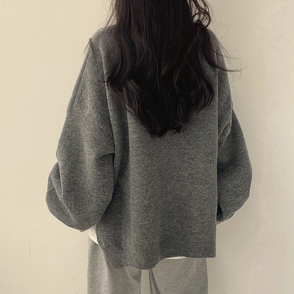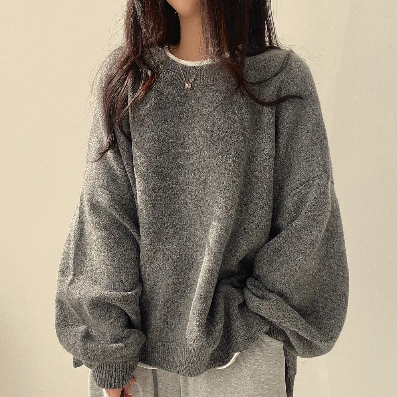 Crewneck Pullover Lantern Sleeve Loose Sweater Woman