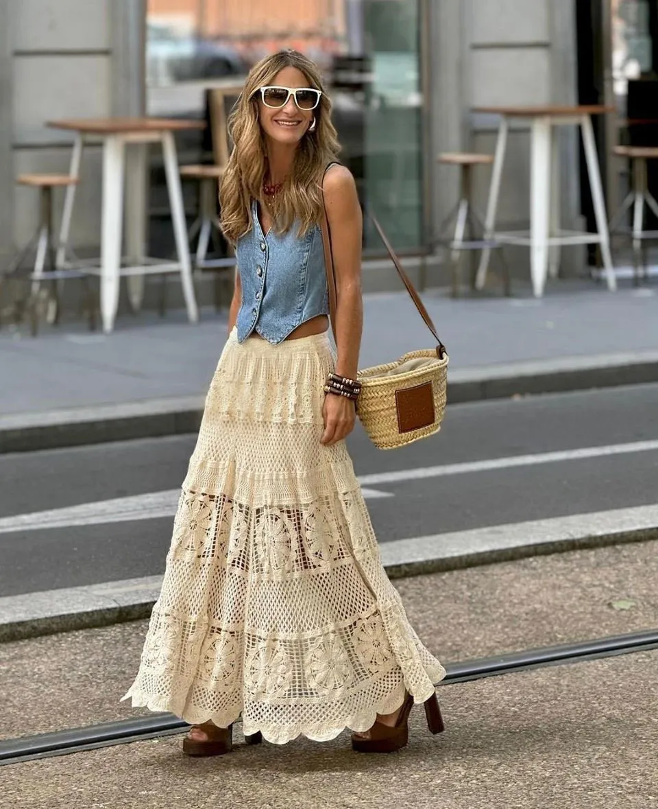 - Chic and Feminine Look: Combines bohemian charm with modern style