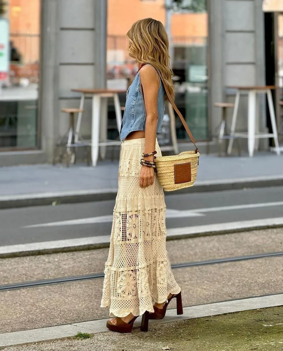 A crochet skirt is a timeless piece that brings a touch of artisanal charm to your wardrobe. With its delicate patterns and lightweight texture, it offers a stylish yet comfortable option for both casual outings and relaxed summer days.