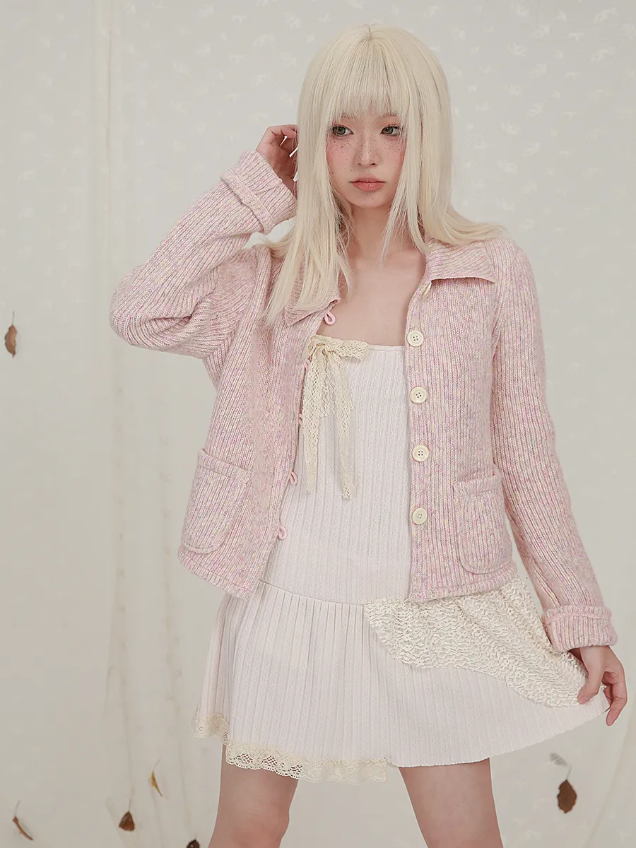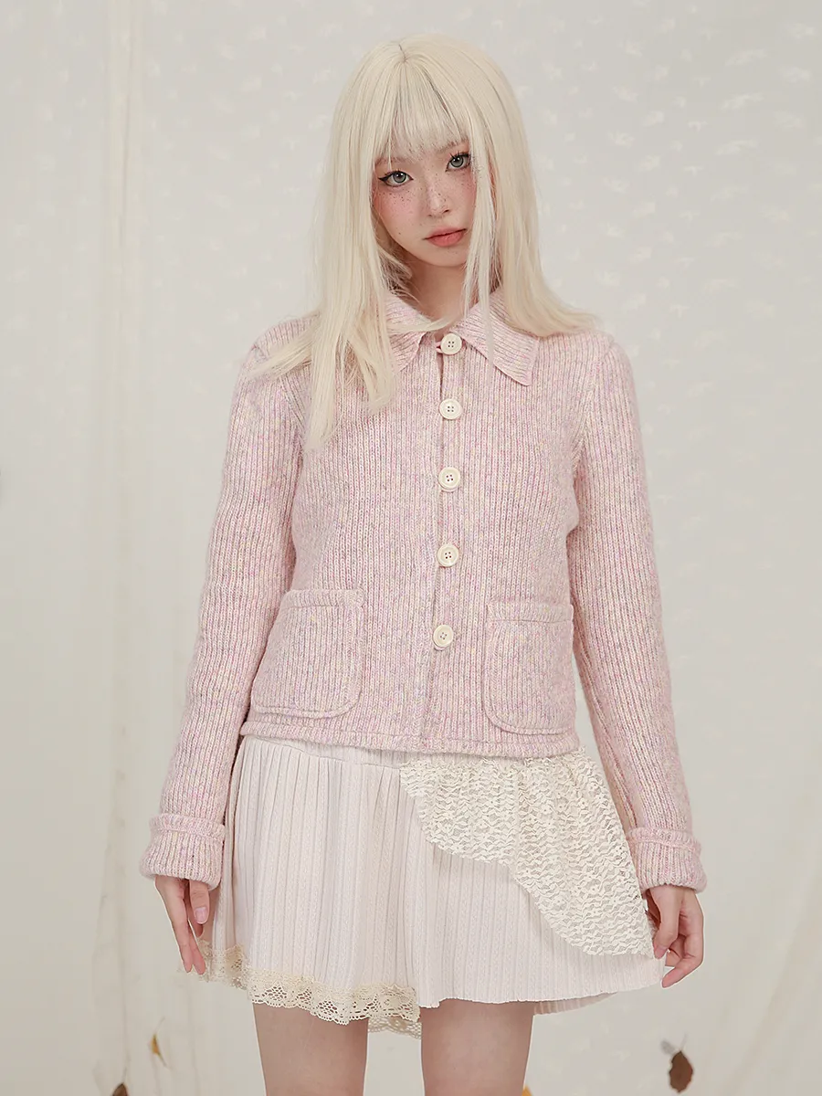 Cropped Long Sleeve Knit Lapel Sweater Cardigan
