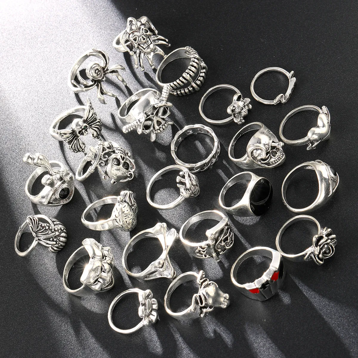 Cross-Border Dark Hip Hop Skull Spider Punk Ring Set 24-Piece Retro Card Collection