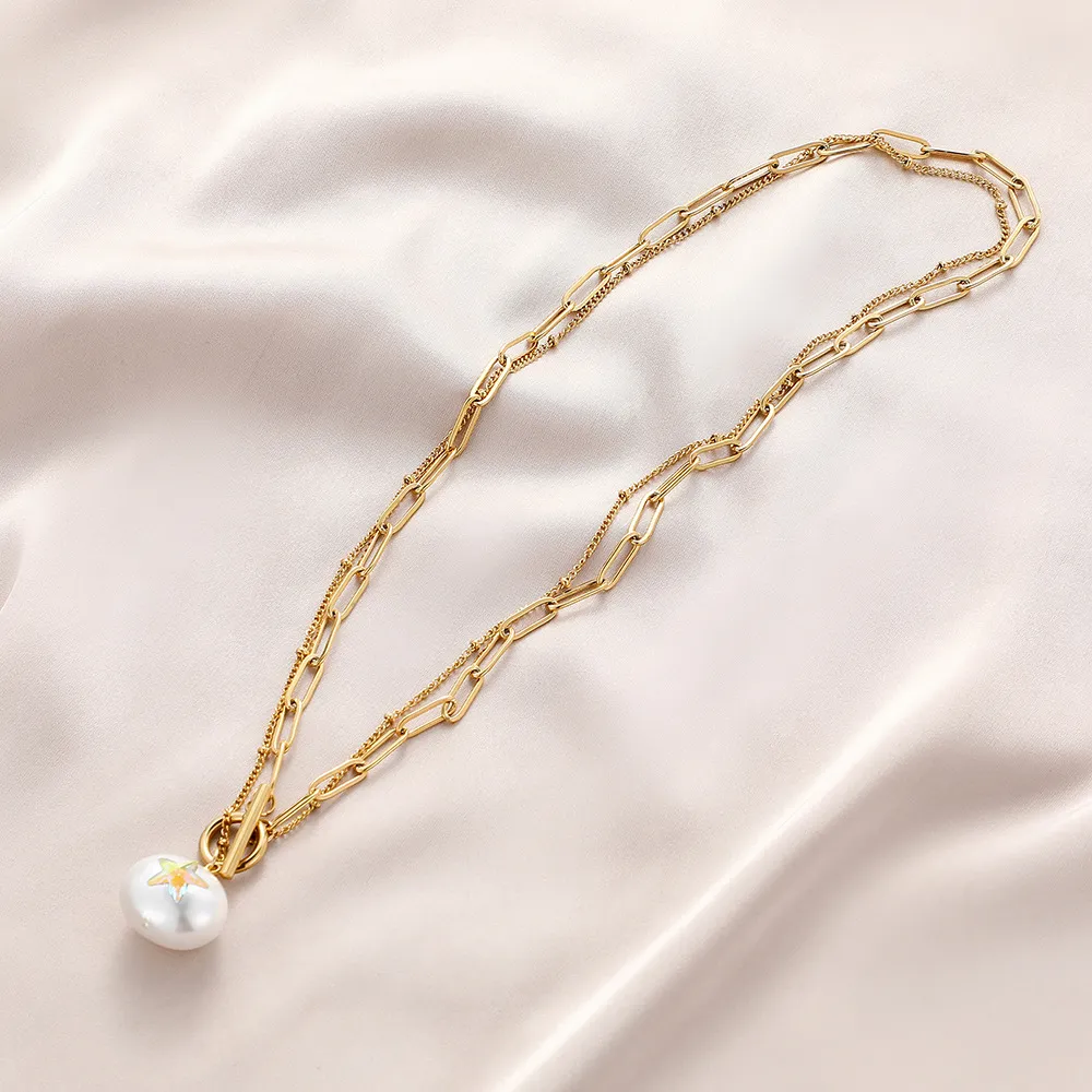 In conclusion, the Cross-border European And American Stainless Steel Round Pearl Star Necklace is an exceptional piece of jewelry that combines timeless elegance with modern flair. Whether you're buying it for yourself or as a thoughtful gift for someone special, this necklace will surely stand the test of time. Its durable materials, stylish design, and versatility make it an essential addition to any jewelry collection. Don't miss out on adding this beautiful, high-quality accessory to your cart today.