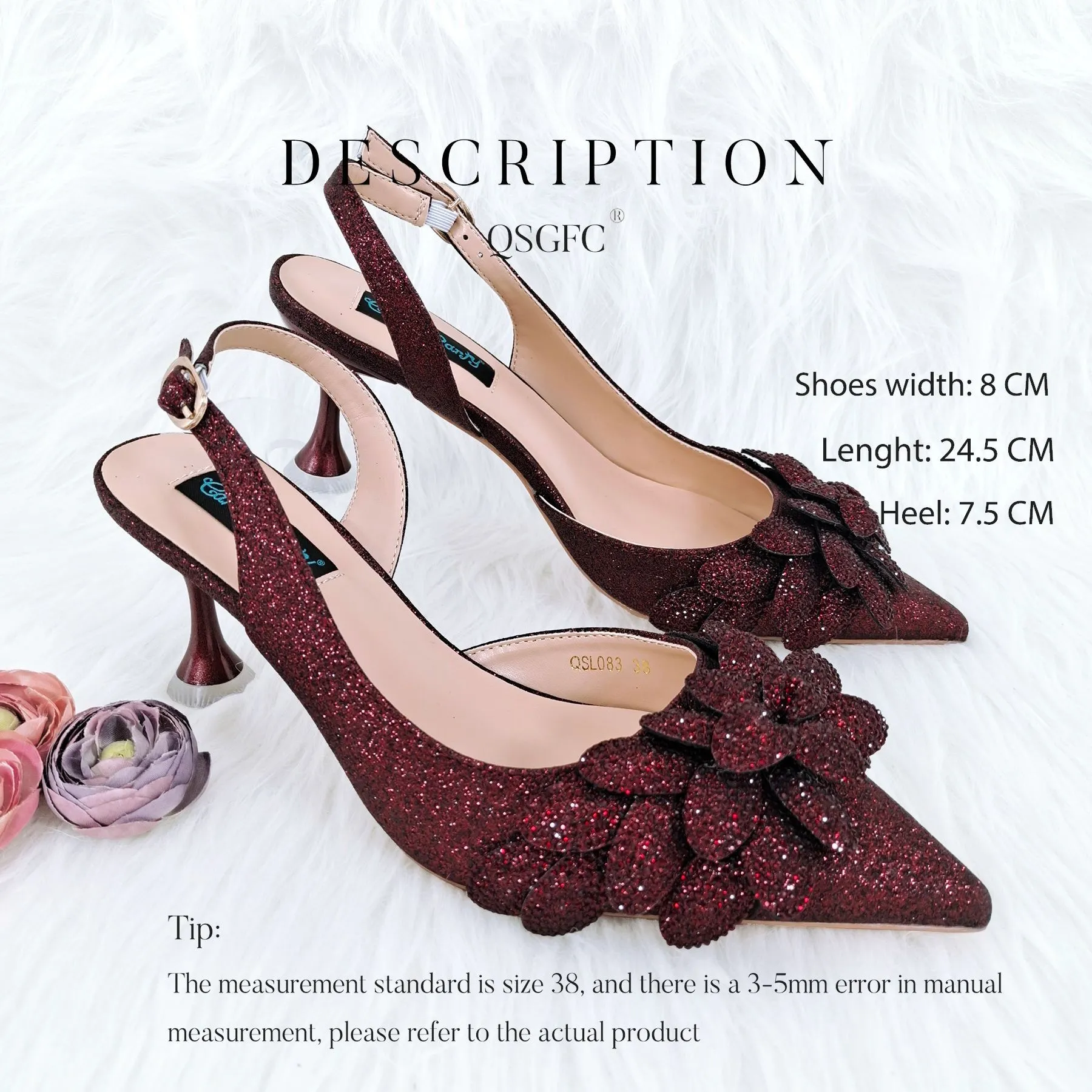 Cross-border Ladies Party Shoes Bag Set Handmade Leaf Decorative Wine Glass Heel