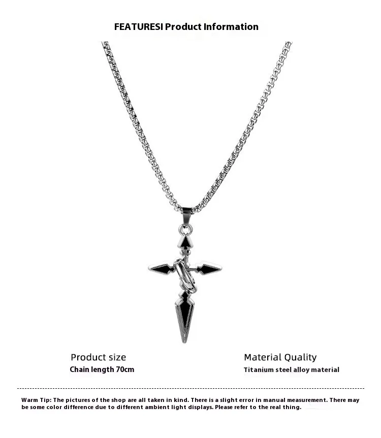 The Cross Pendant Men's Trendy Sweater Pendant Titanium Steel Necklace is a bold and stylish piece of jewelry designed for men who appreciate timeless designs with a modern twist. Made from durable titanium steel, this pendant features a sleek cross design that can be worn as a statement piece or to complement your everyday style. Its minimalist yet striking design makes it a perfect accessory for both casual and formal occasions. Whether you're looking for something that expresses your faith, adds an edge to your outfit, or simply seeking a versatile necklace, this pendant is the ideal choice for any man.