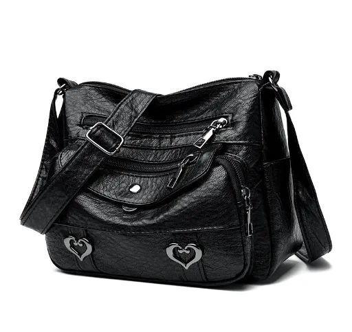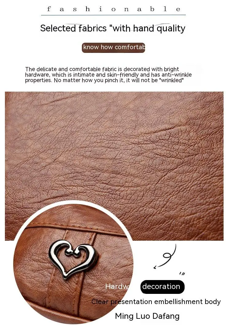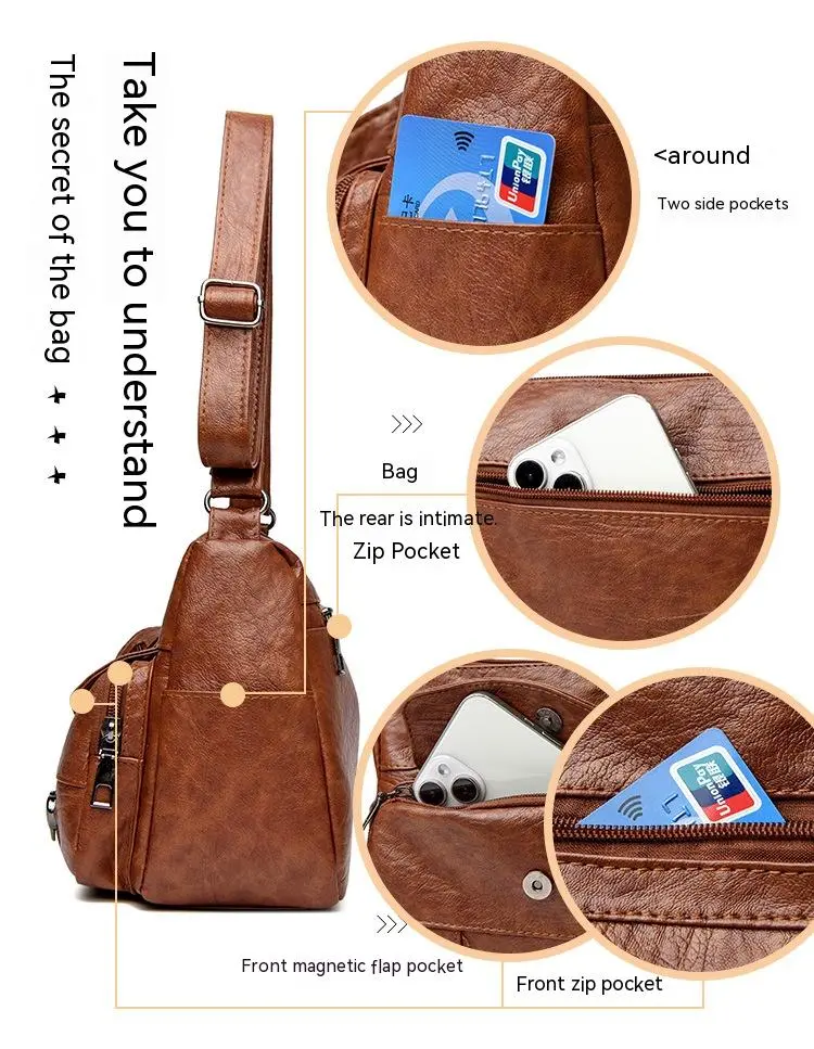 Crossbody Bag Soft Leather Textured Retro Large Capacity Middle-aged