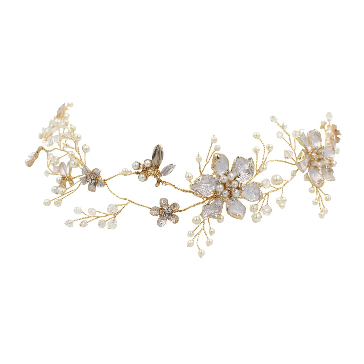 The accessory showcases intricately designed alloy flowers with a lacquered finish, offering a refined and natural look.