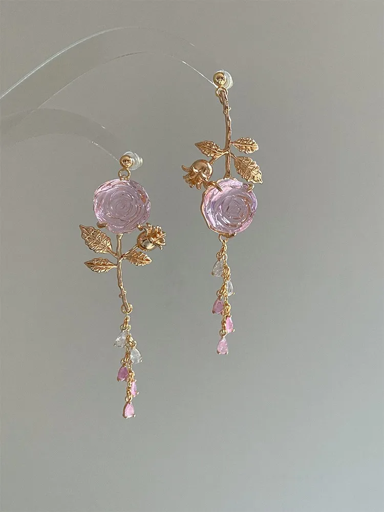 Crystal Heart Rose High Permeability Retro Stud Earrings