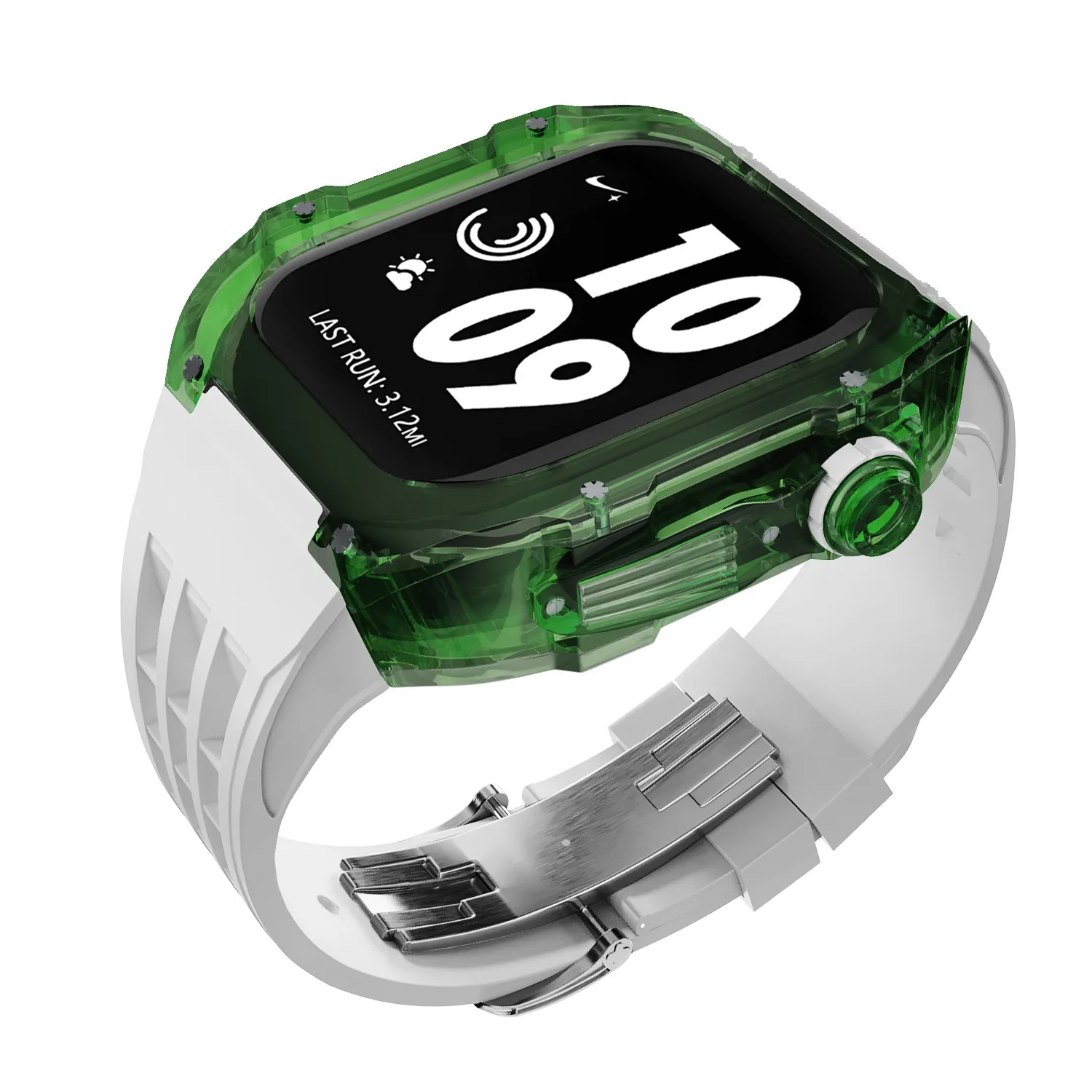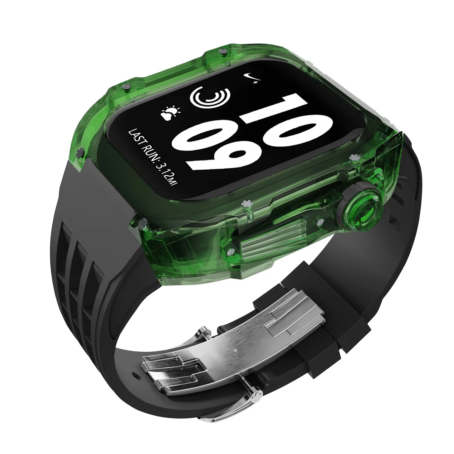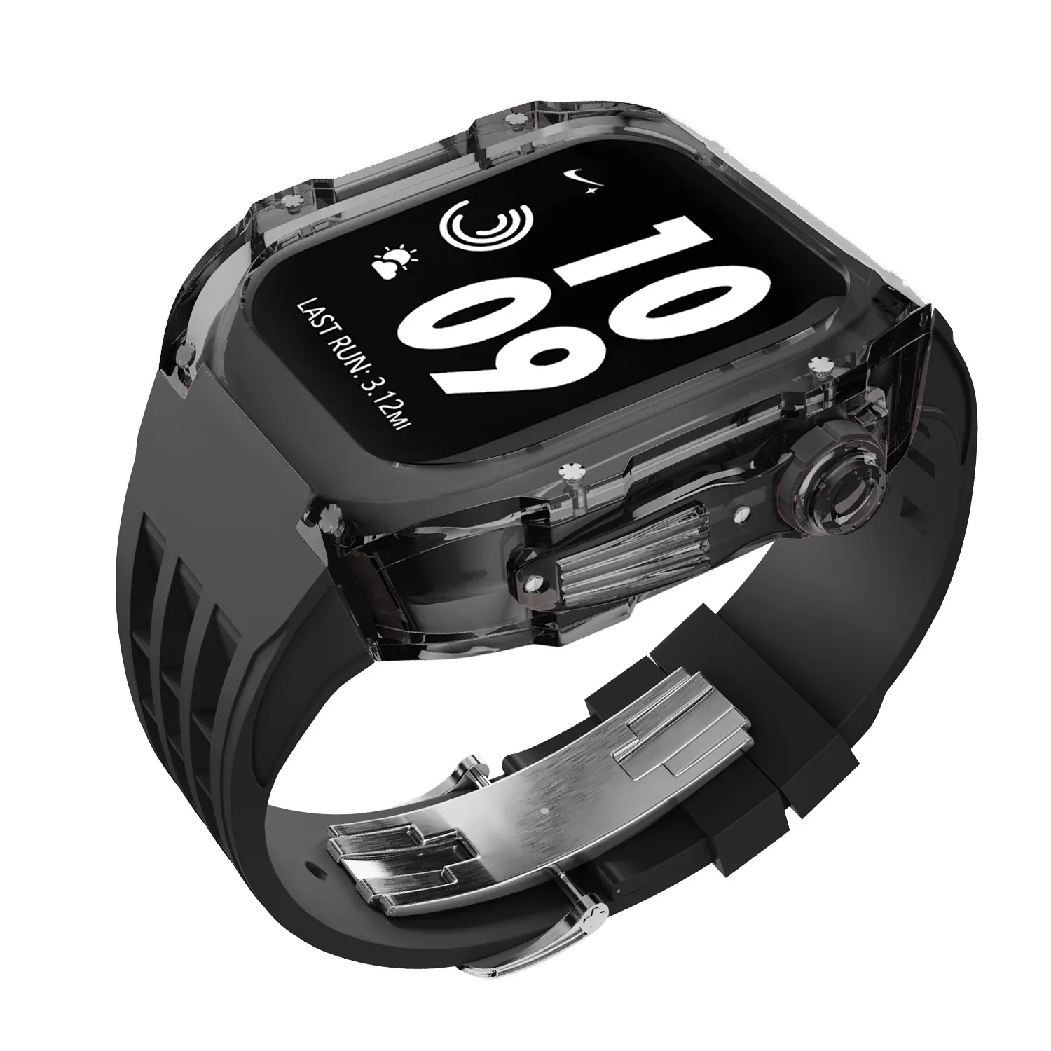 Sleek and Modern Design: Combines a transparent case with a fluorine rubber strap to provide a