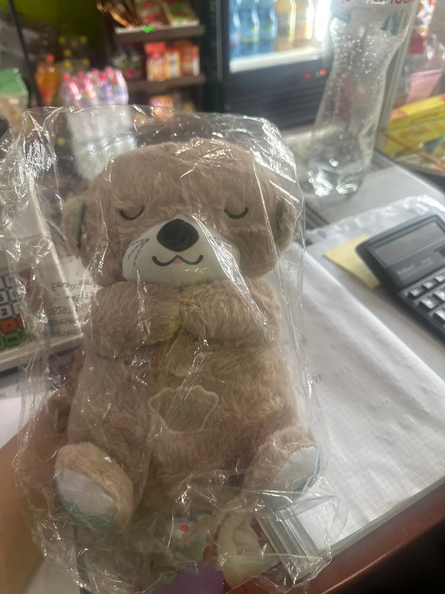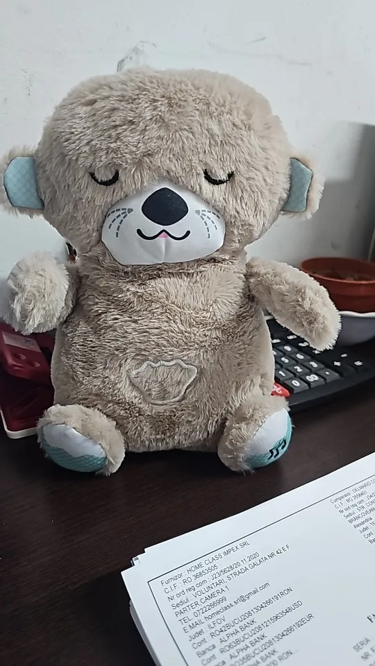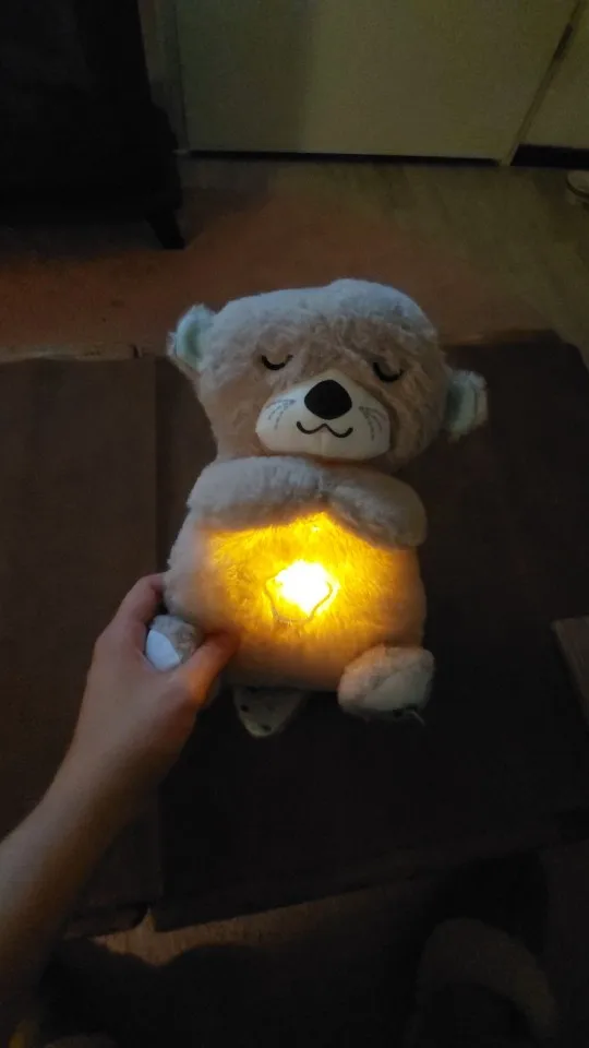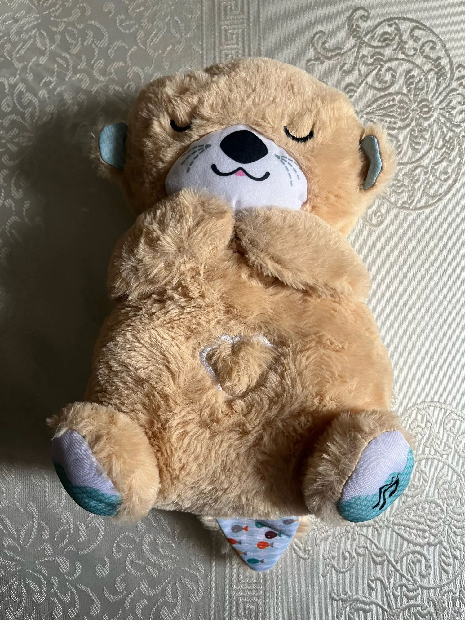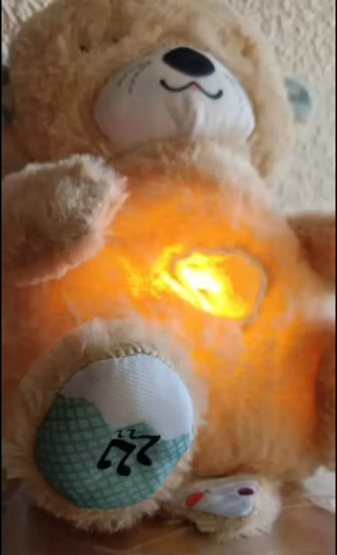 breathing baby bear, baby soothing bear, plush breathing toy, baby sleep aid, heartbeat teddy bear, calming bear for infants, baby sleep soother, plush bear with breathing motion, infant sleep companion, baby relaxation toy