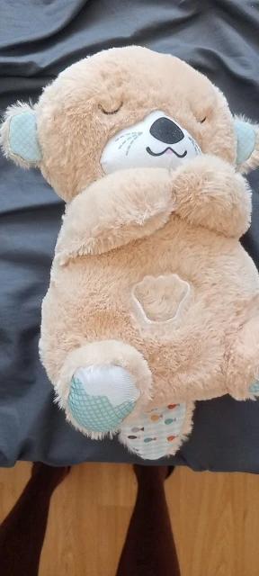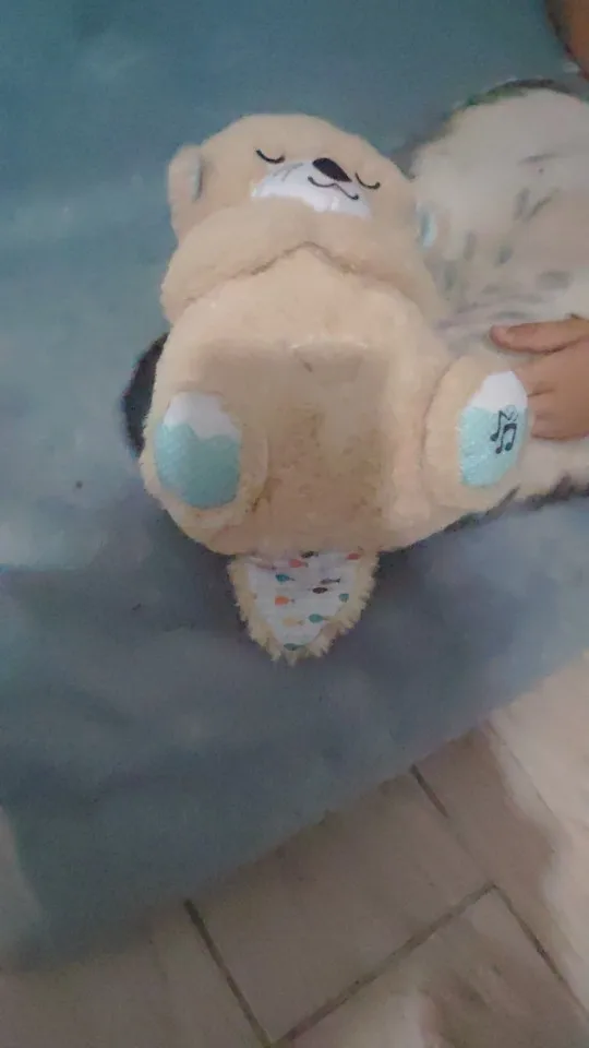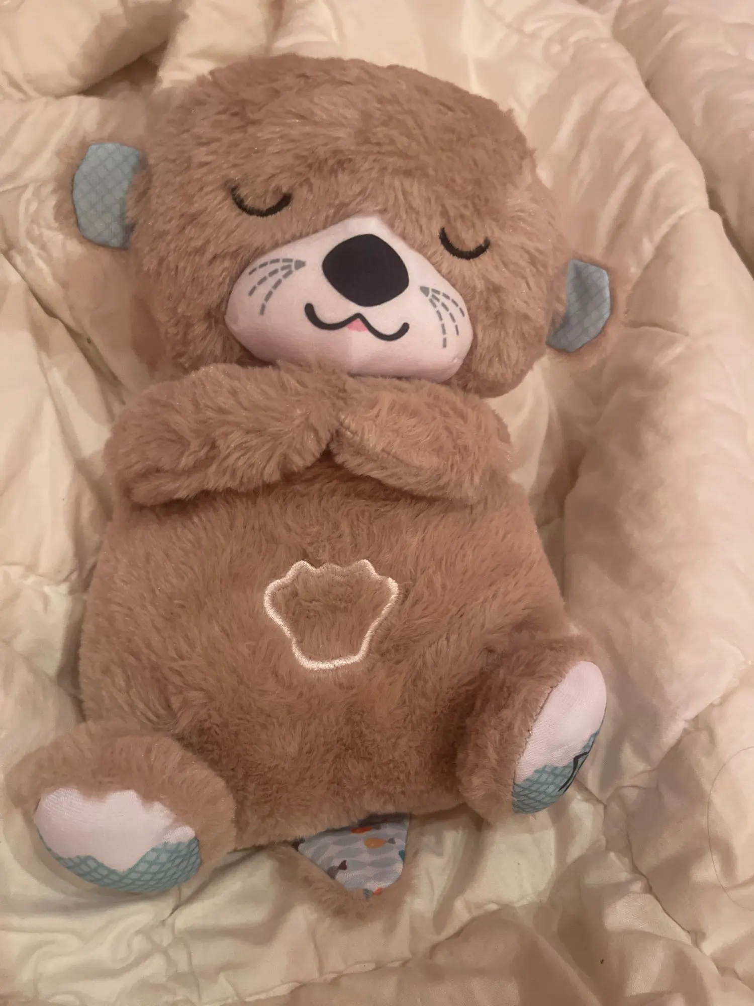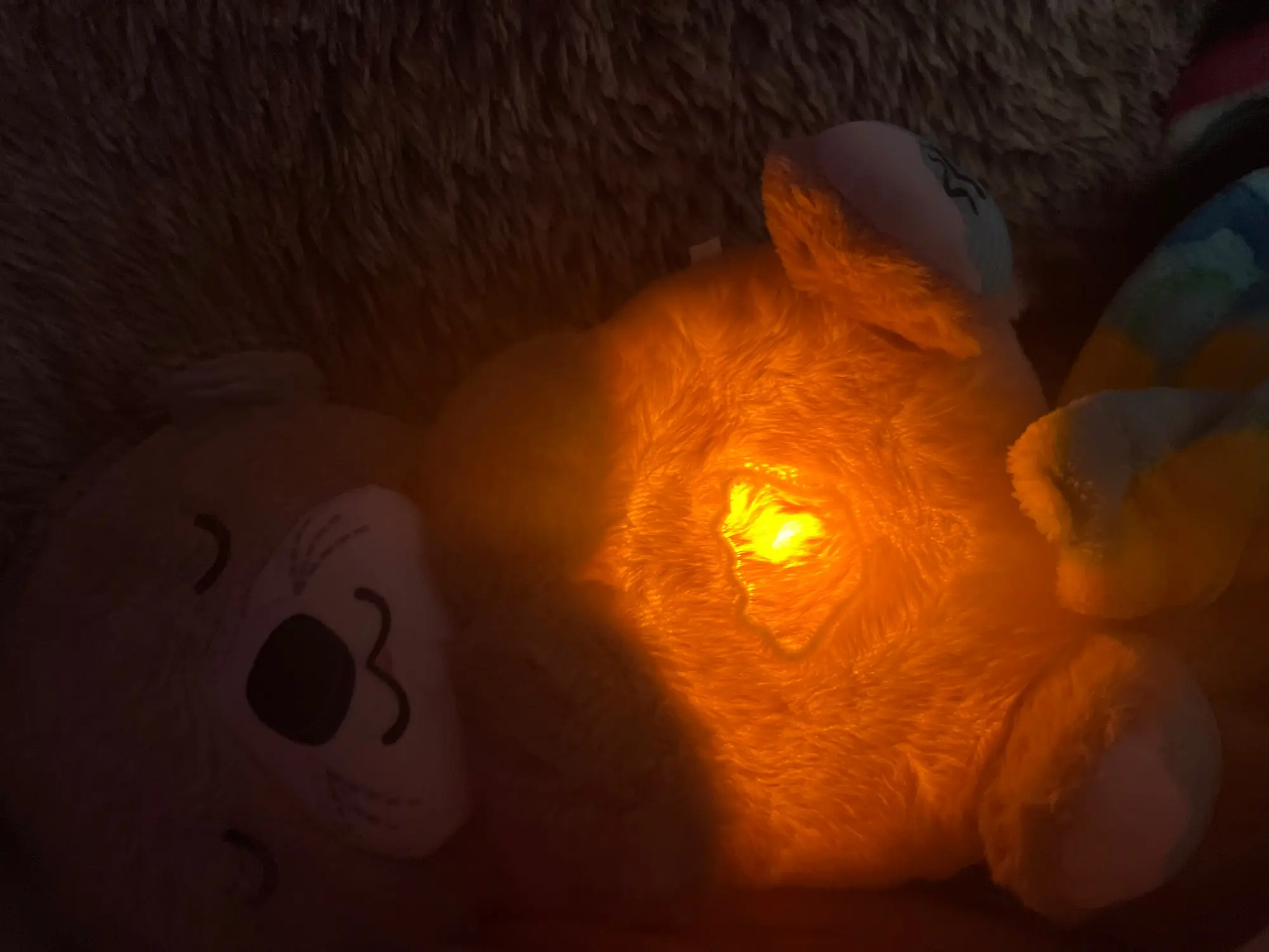 breathing baby bear, baby soothing bear, plush breathing toy, baby sleep aid, heartbeat teddy bear, calming bear for infants, baby sleep soother, plush bear with breathing motion, infant sleep companion, baby relaxation toy