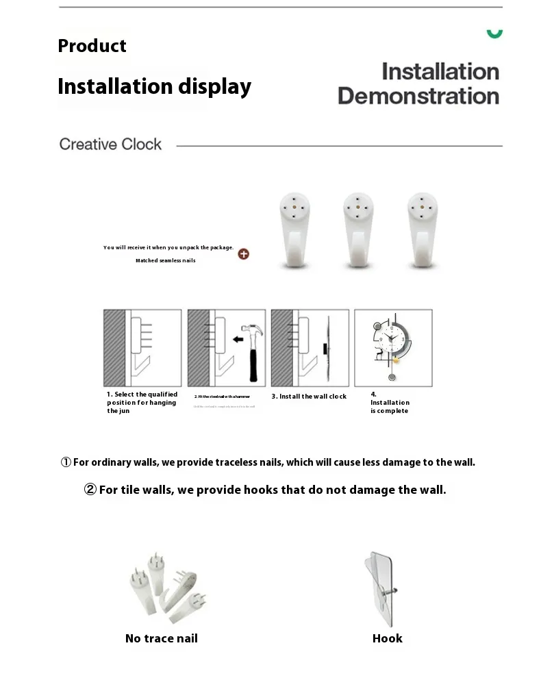 The Custom Fashion Nordic Wall Clock is easy to install with a simple hanging mechanism that allows you to mount it securely on any wall. No complicated assembly is required, and the clock is ready to hang right out of the box. The materials are also easy to clean, ensuring that the clock remains looking fresh and polished with minimal effort.