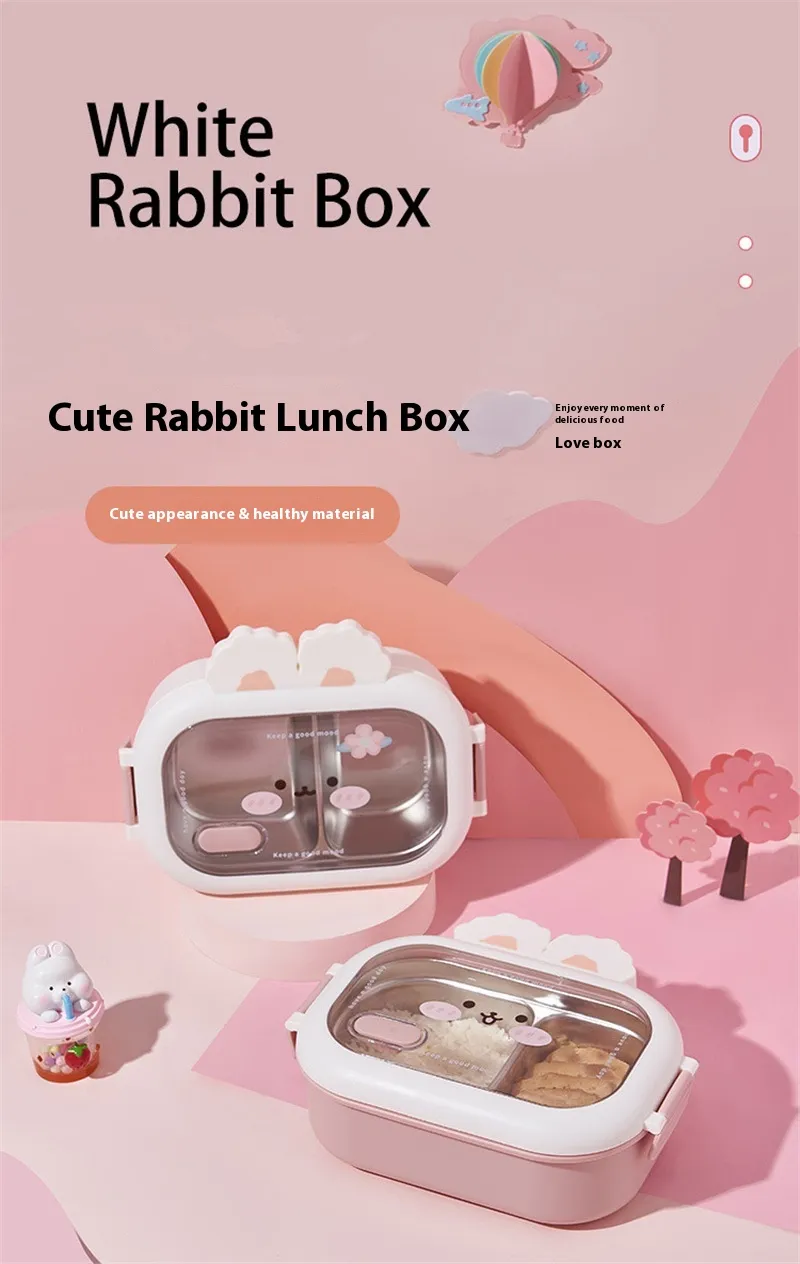 Cute Bunny Stainless Steel Creative Compartment Student Lunch Box