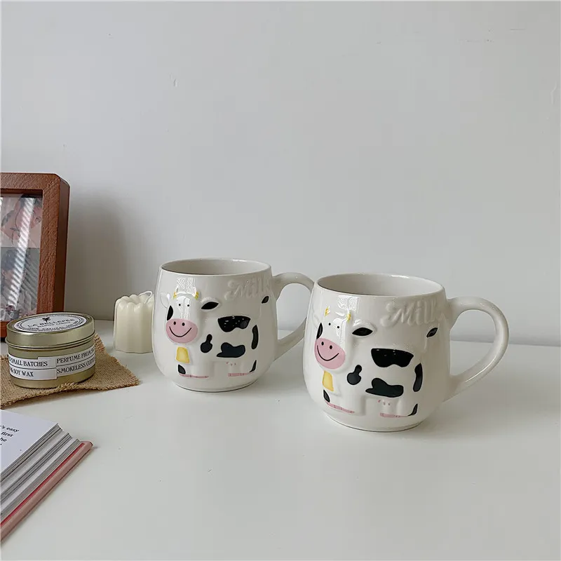 Cute Cartoon Mug Cow Embossed Creative Ceramic Mug With Handle