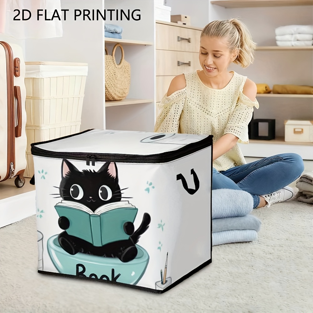 Cute Cat Foldable Storage Box Large Capacity Organizer with Zipper Lid