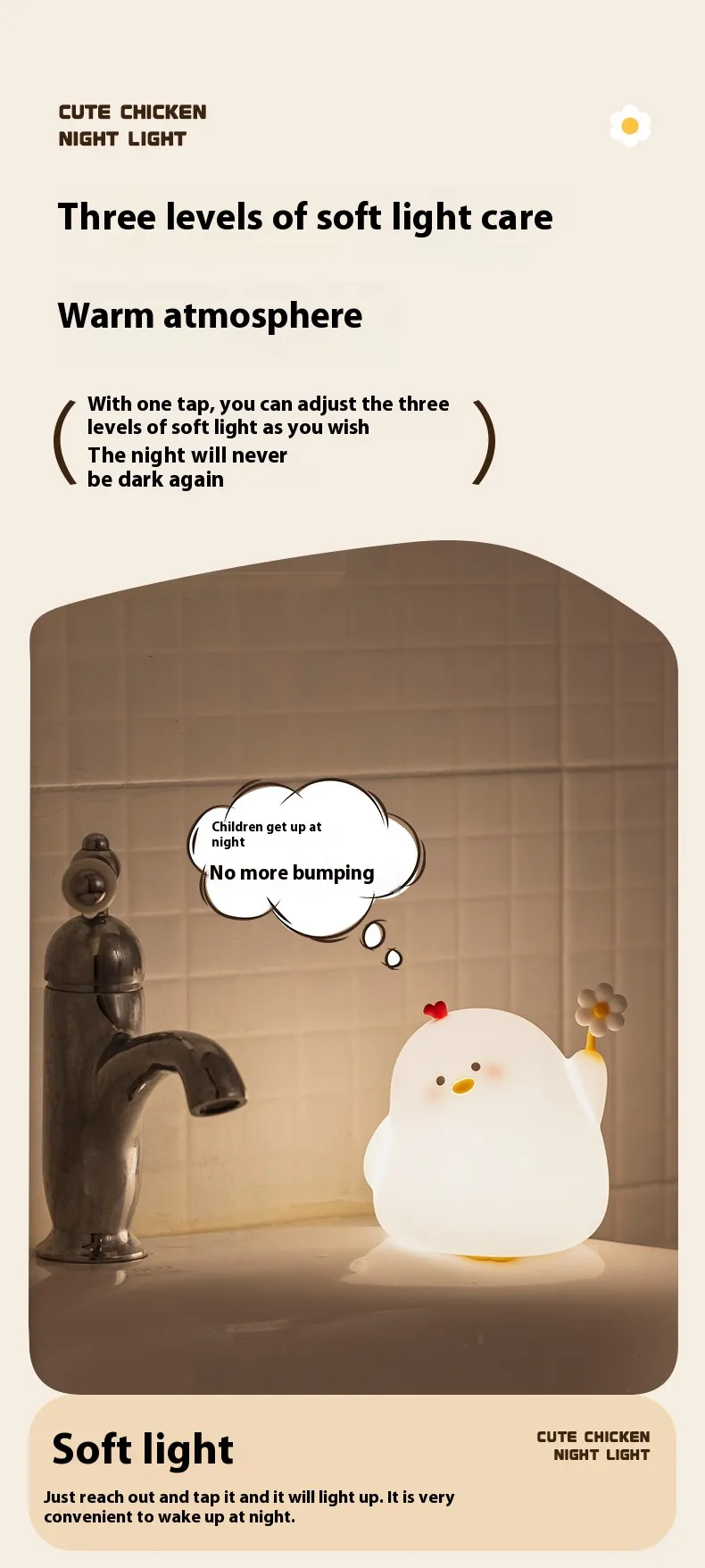 Whether you need a nightlight, reading light, or a decorative lamp, the Cute Chicken Night Light serves multiple purposes. It’s perfect for nighttime routines, providing comfort and a gentle glow for sleeping or reading.