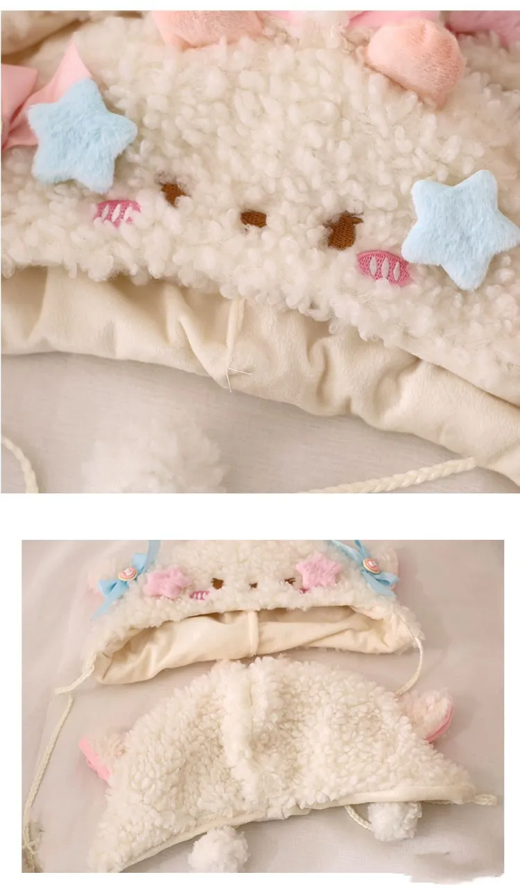 Cute Lamb Ears Earmuffs Hat Lambswool Bucket Hat