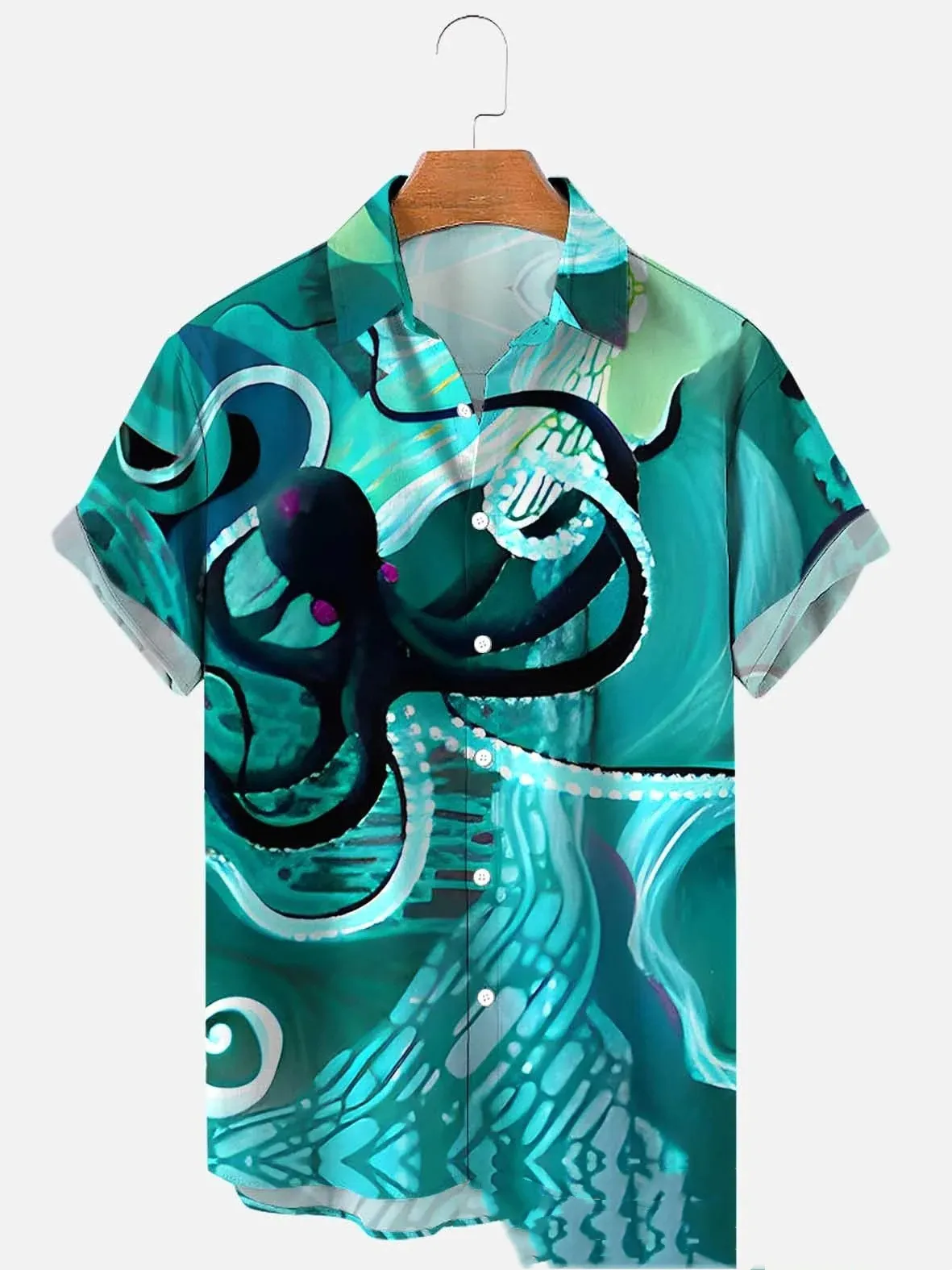 Shirt - Men's Beach Creative Octopus Stra, Men's Deep Sea Tenacles Print Shirt, Men's Deep Sea Octopus Print Shirt, Men's Deep Sea Octopus