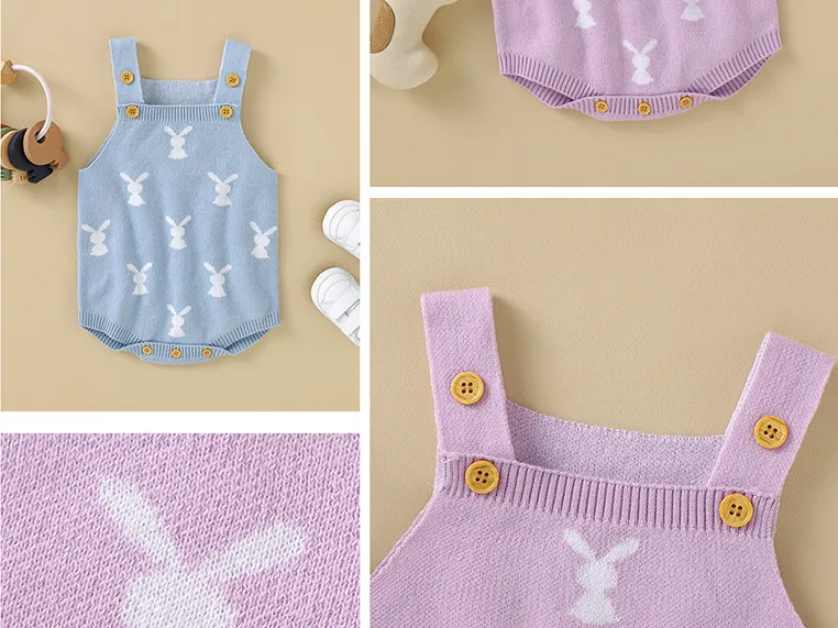 Adorable Rabbit Jacquard Design: The romper features a cute rabbit jacquard pattern, adding a playful touch to your baby’s