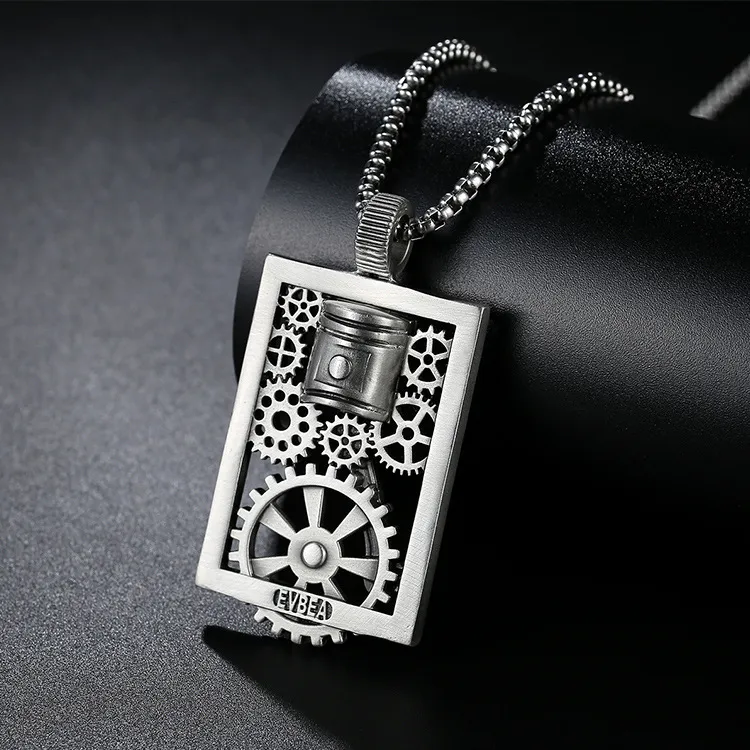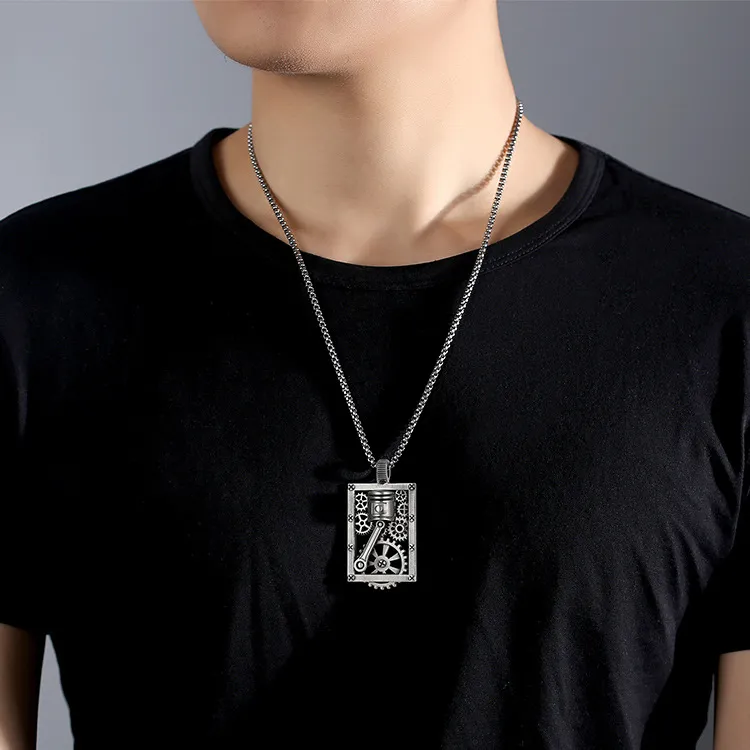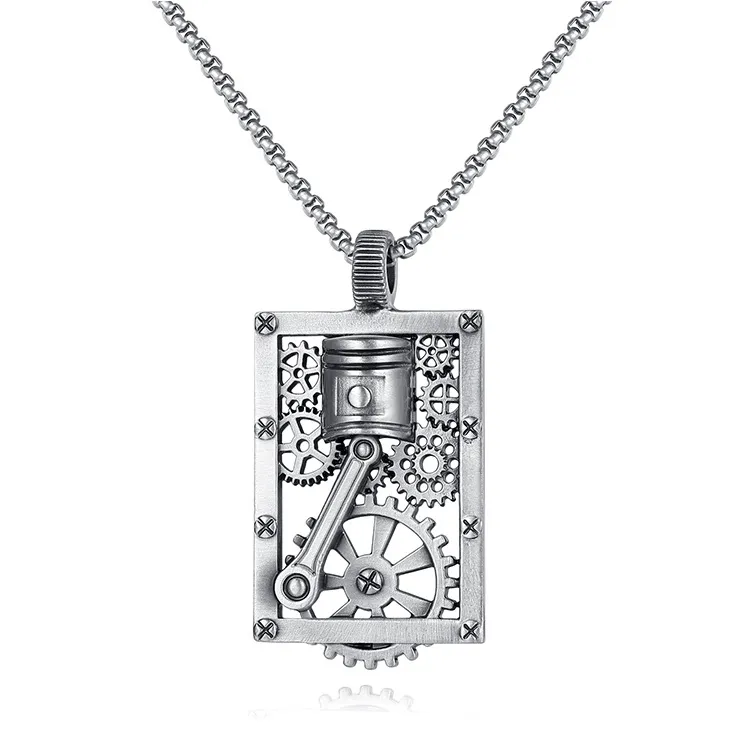 Cutout Square Gear Piston Pendant Necklace