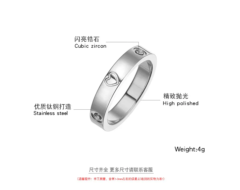 CZ Zircon Love Heart Engraved Stainless Steel Ring for Women